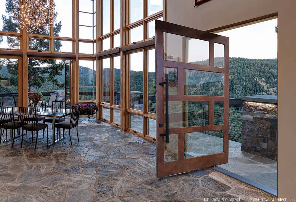 - Design dramatic large entrances up to 50 sq ft per panel with max dimensions of 10’ high or 6’ wide that you can specify to be an inswing or an outswing.